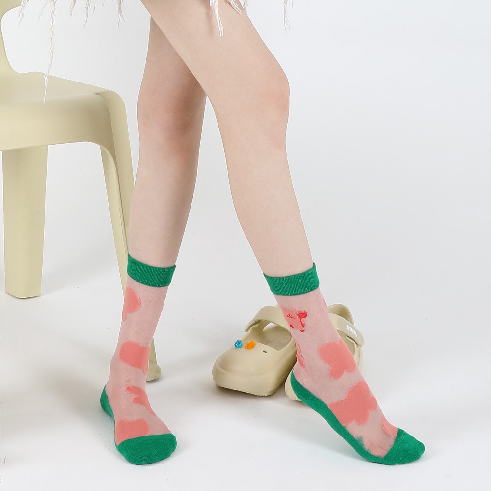 Cute Bear Socks: Adorable cartoon bear design, breathable cotton, perfect for spring/summer comfort.