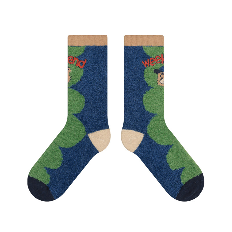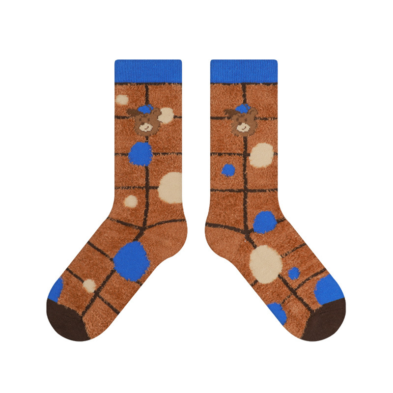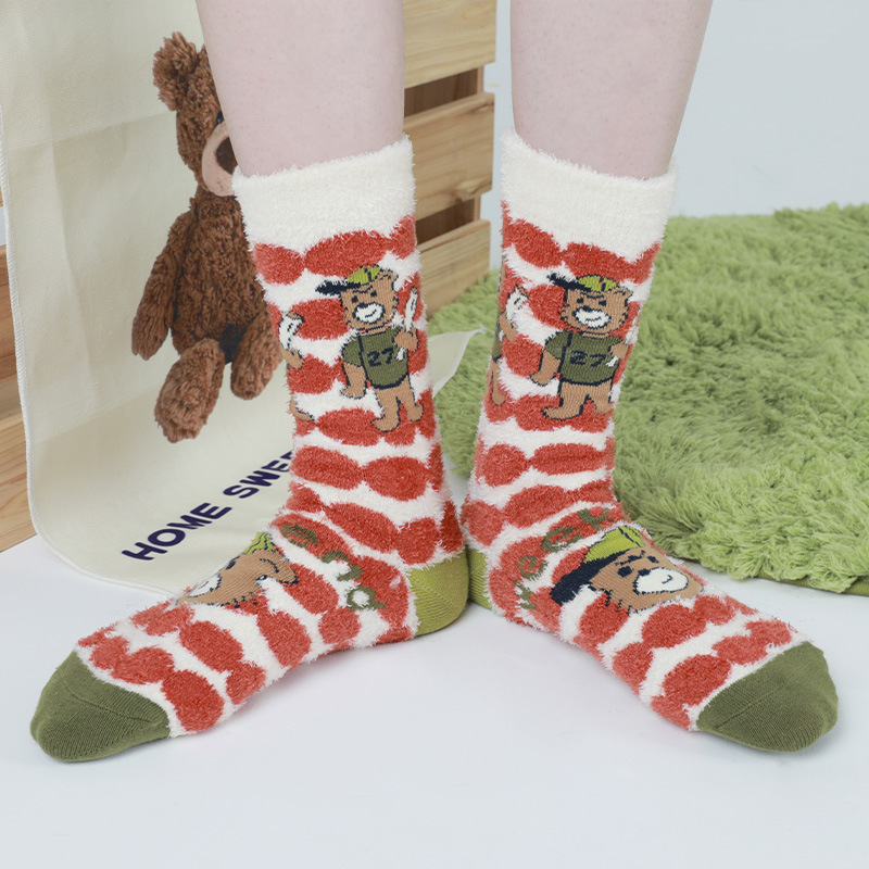 **25 Winter New Socks Women’s Weekend Series Bear Plush Socks – Super Thick Floor Socks, All-Match Thickened Warm Socks**