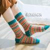 Fair Isle Socks: Vintage Ethnic Combed Cotton Mid-Calf Socks for Women & Men