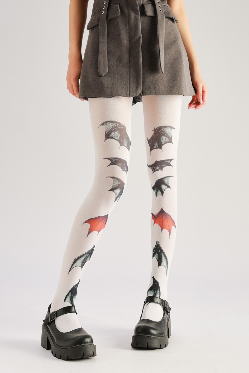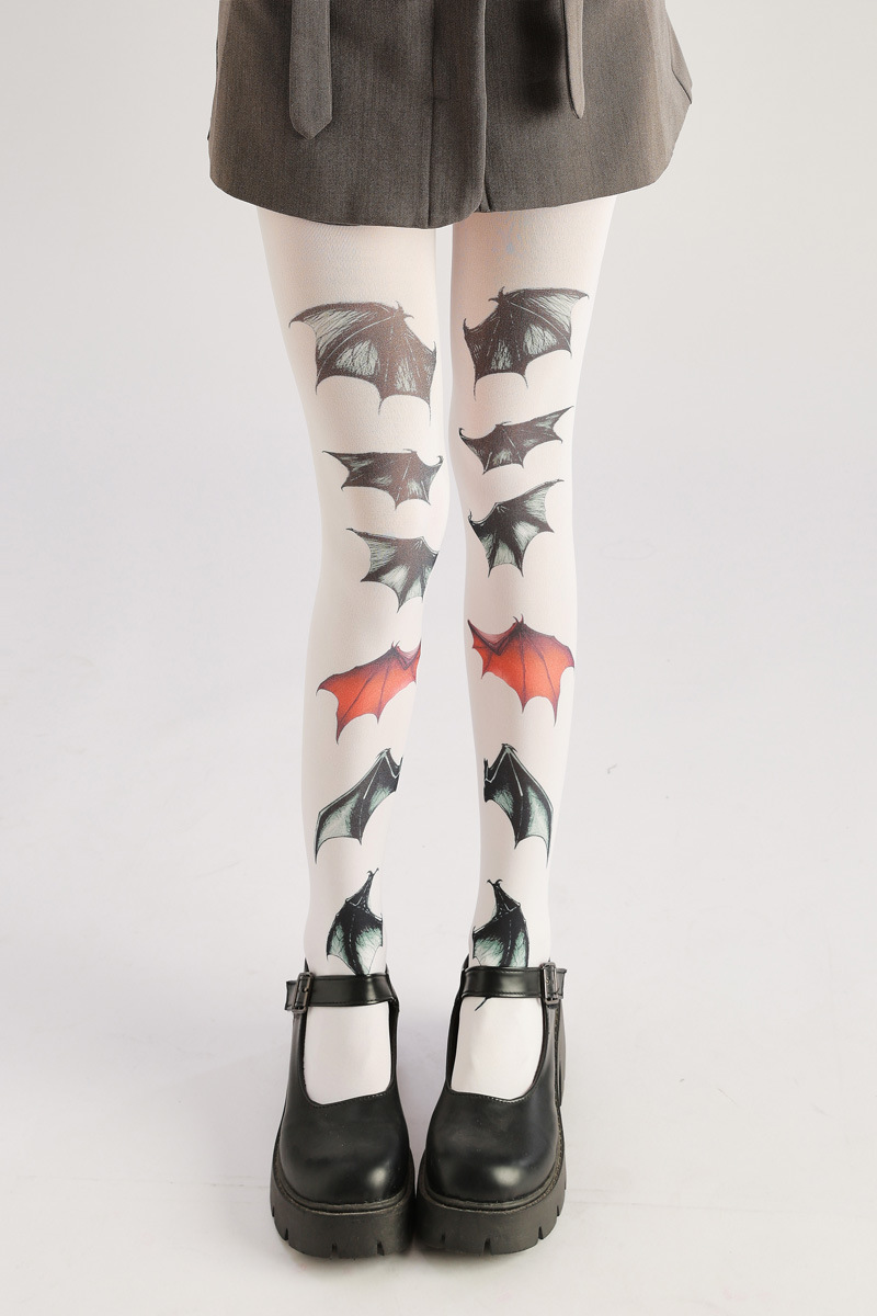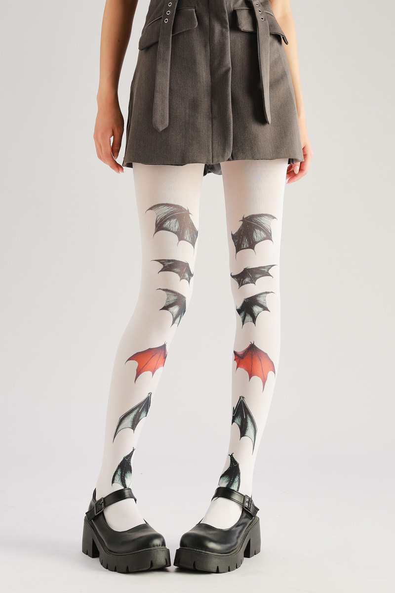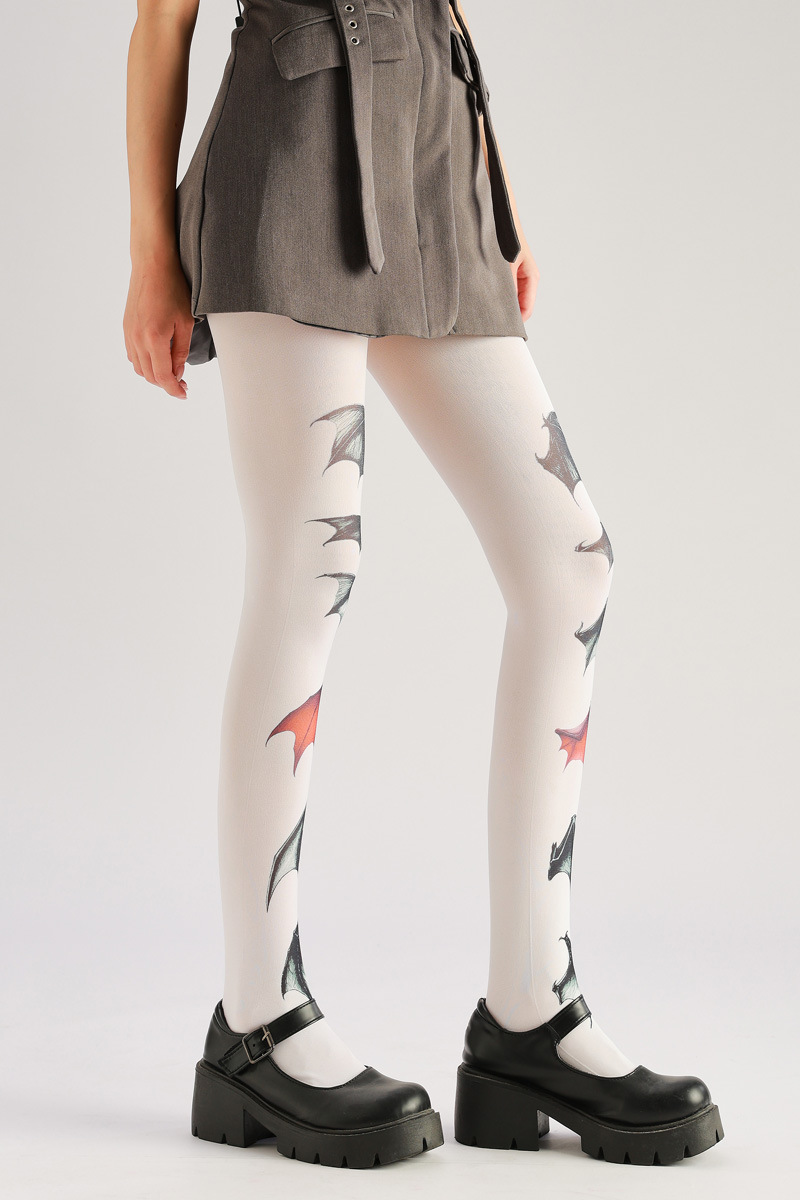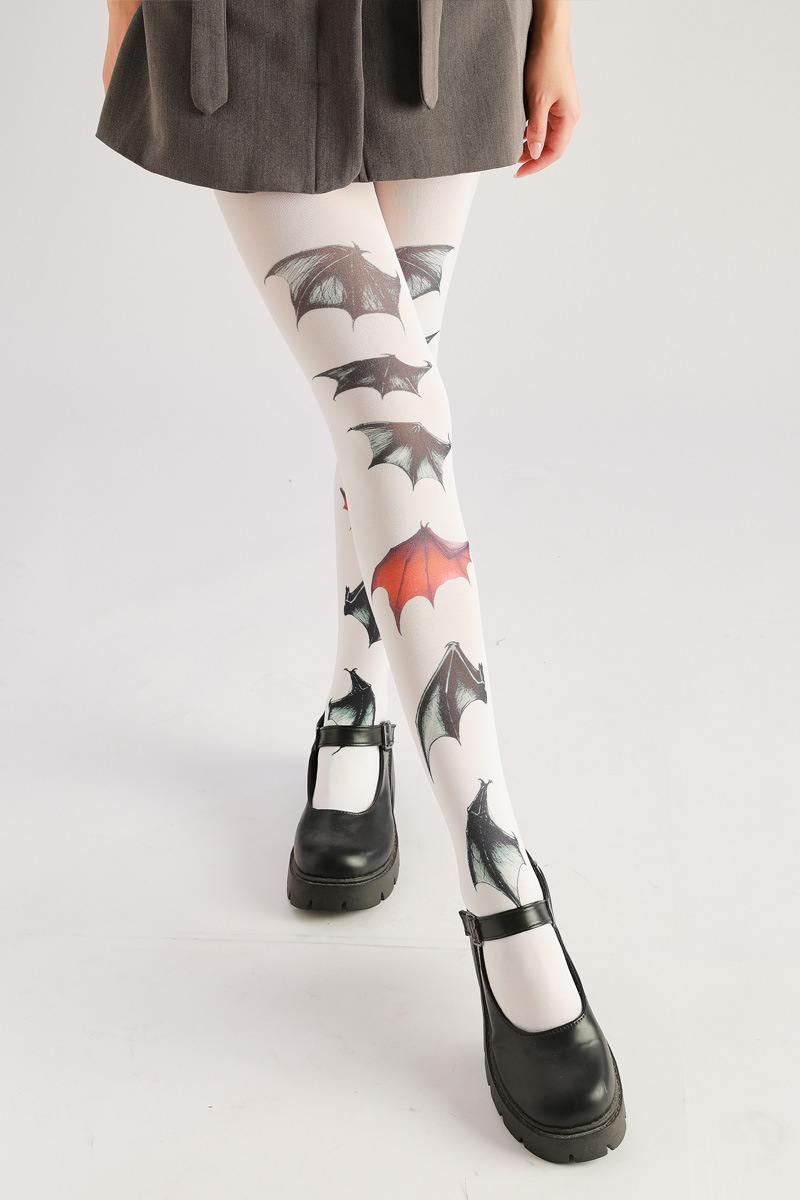 Dare to be different. These dark, hand-painted bat pattern pantyhose offer a unique, edgy style. Stand out with a bold, gothic-inspired look that’s both eye-catching and comfortable. Perfect for adding a touch of darkness and individuality to any outfit.