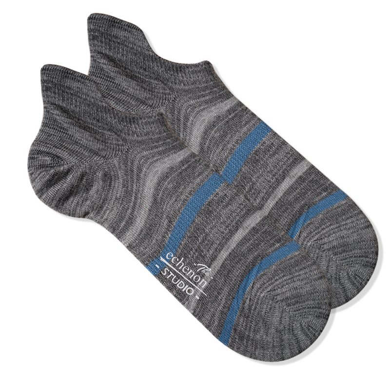 **ECHENON Men’s Spring and Summer Japanese Striped Short Ankle Socks – Big Foot Heel Socks**