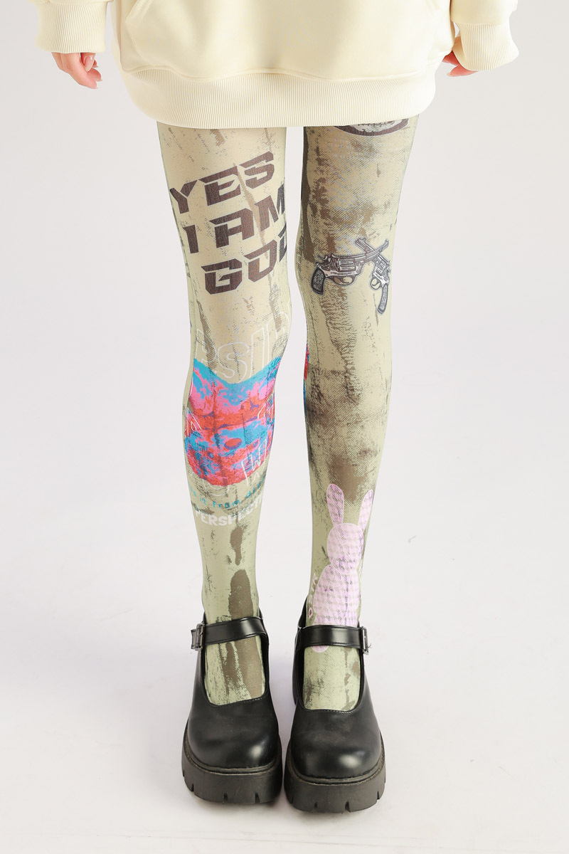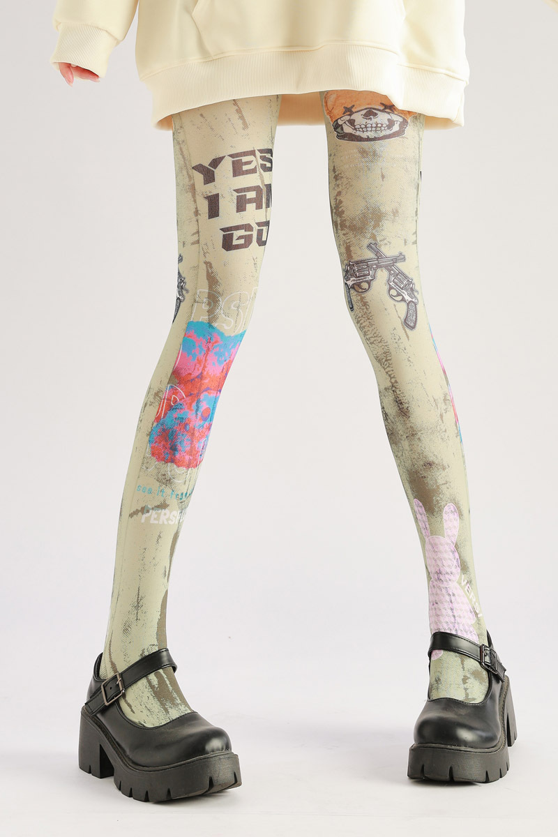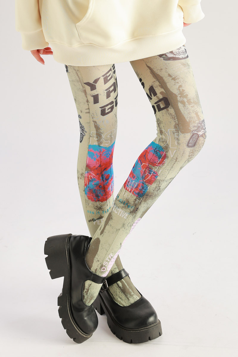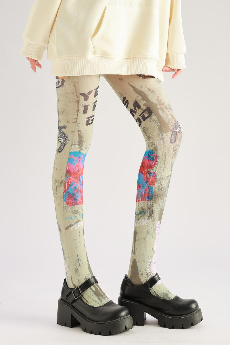 Boldly express yourself with these English alphabet graffiti print pantyhose. Featuring a unique, eye-catching design, they add an edgy, artistic flair to any outfit. Durable and comfortable, these pantyhose are a statement piece that elevates your style and sets you apart.