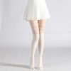 Fashion women’s sexy black cross fake straps splicing striped fake high-top pantyhose