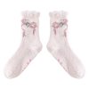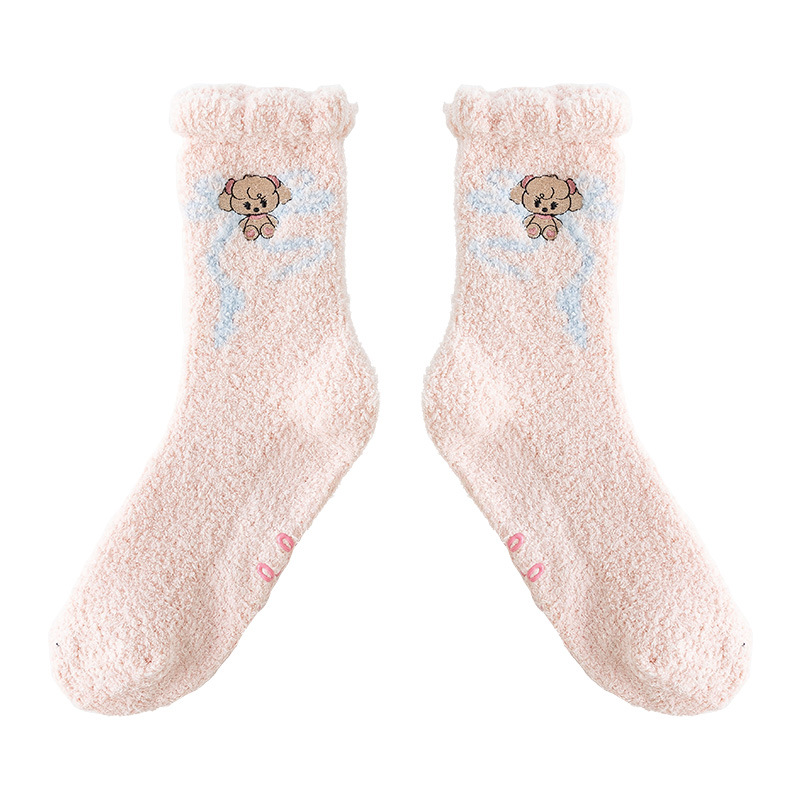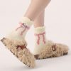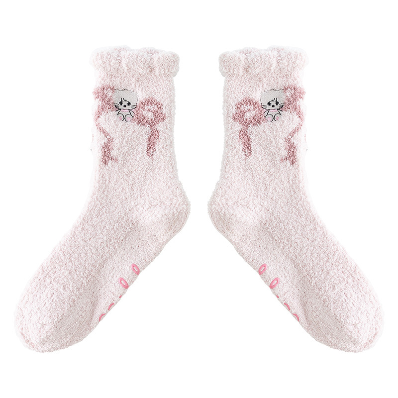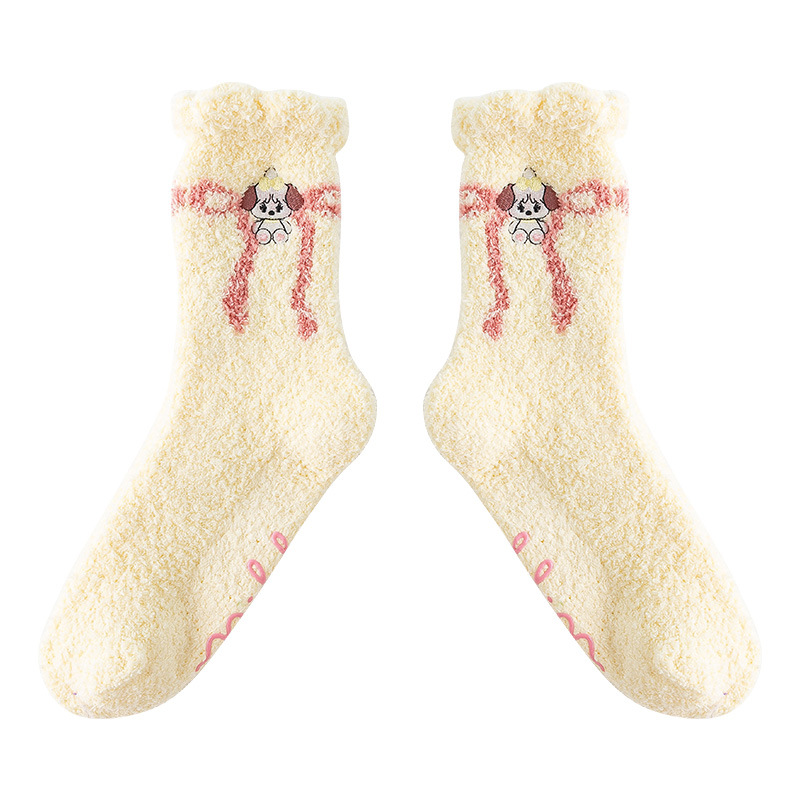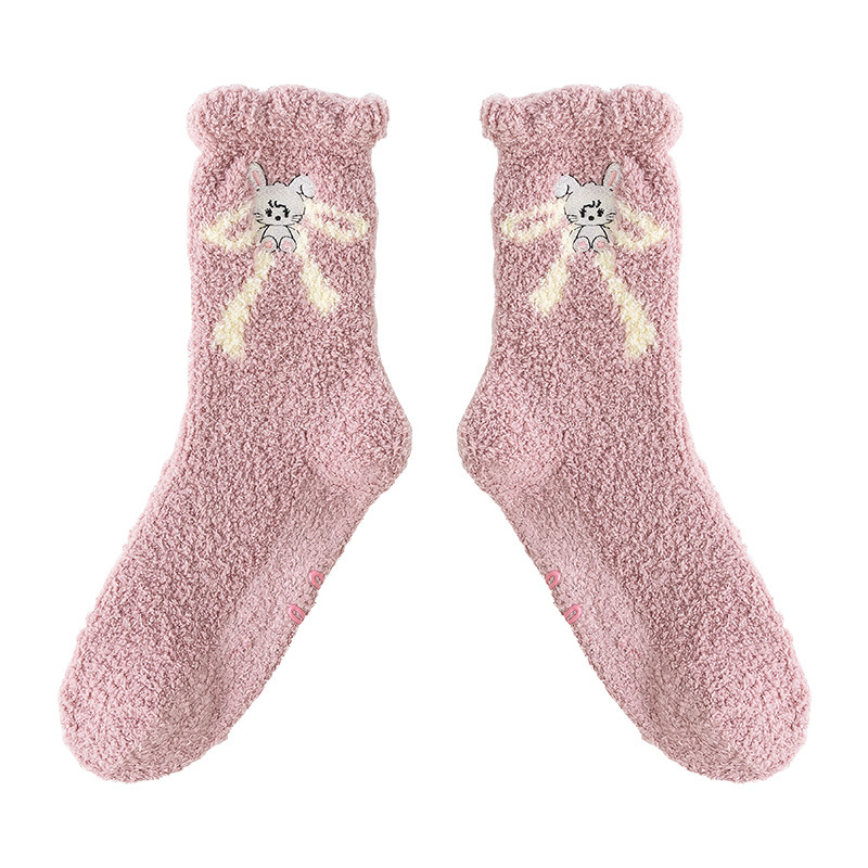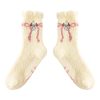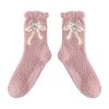 himiya ko autumn and winter embroidery plush tube socks women pink bow warm home floor socks moon socks