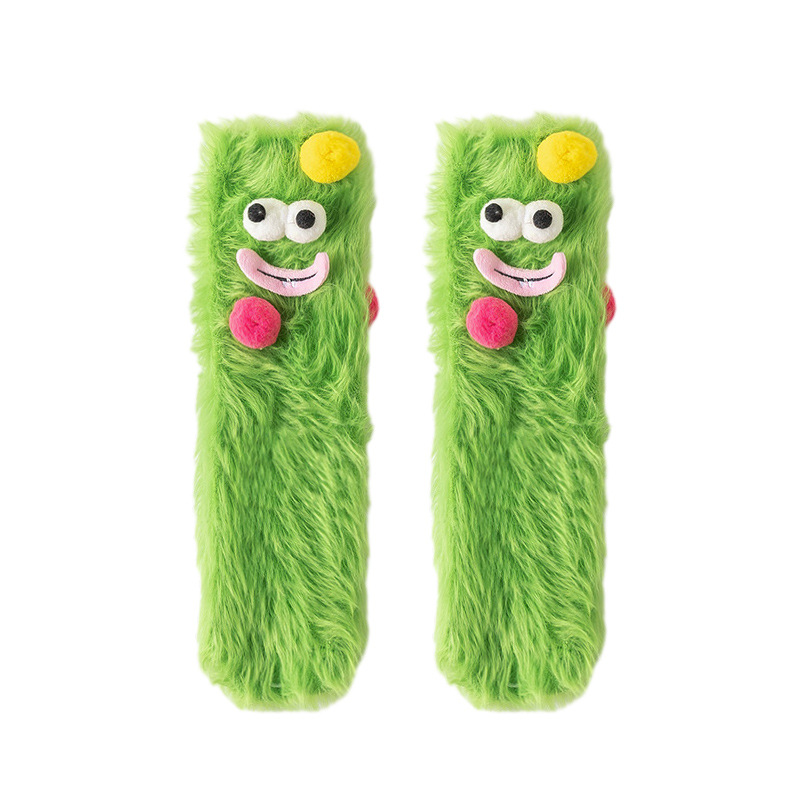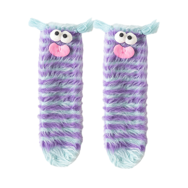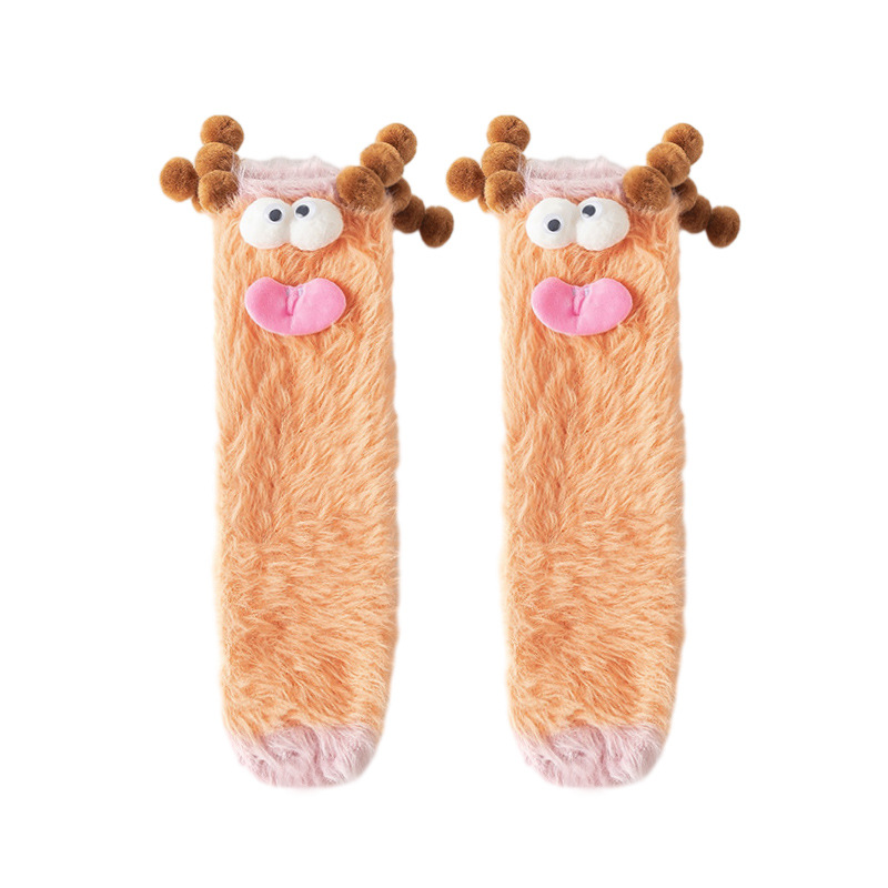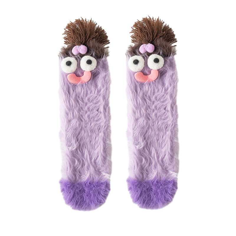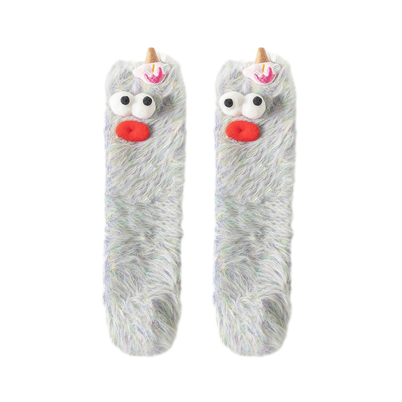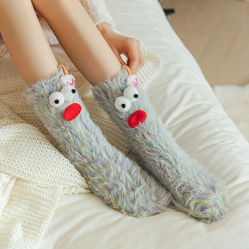 Cute Cartoon Fuzzy Socks – Women’s Winter Mid-Calf Thick Socks
