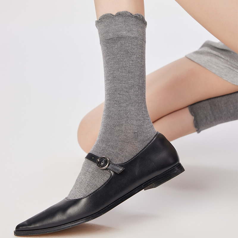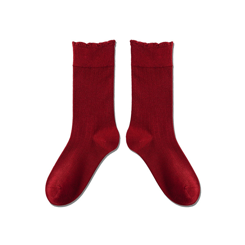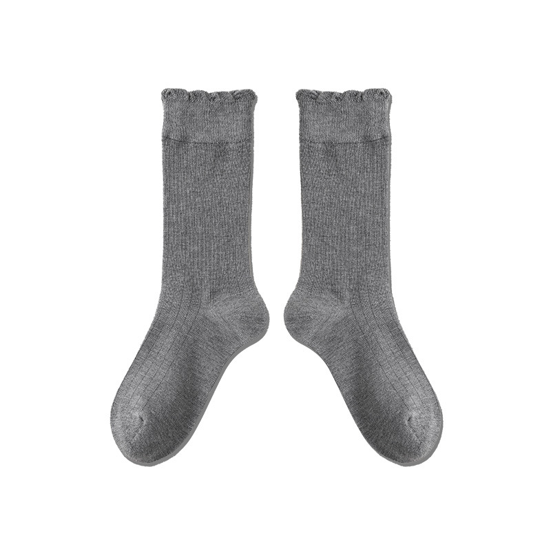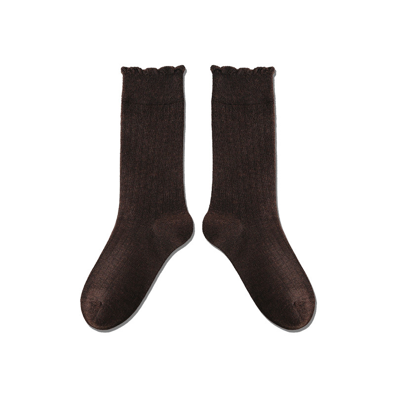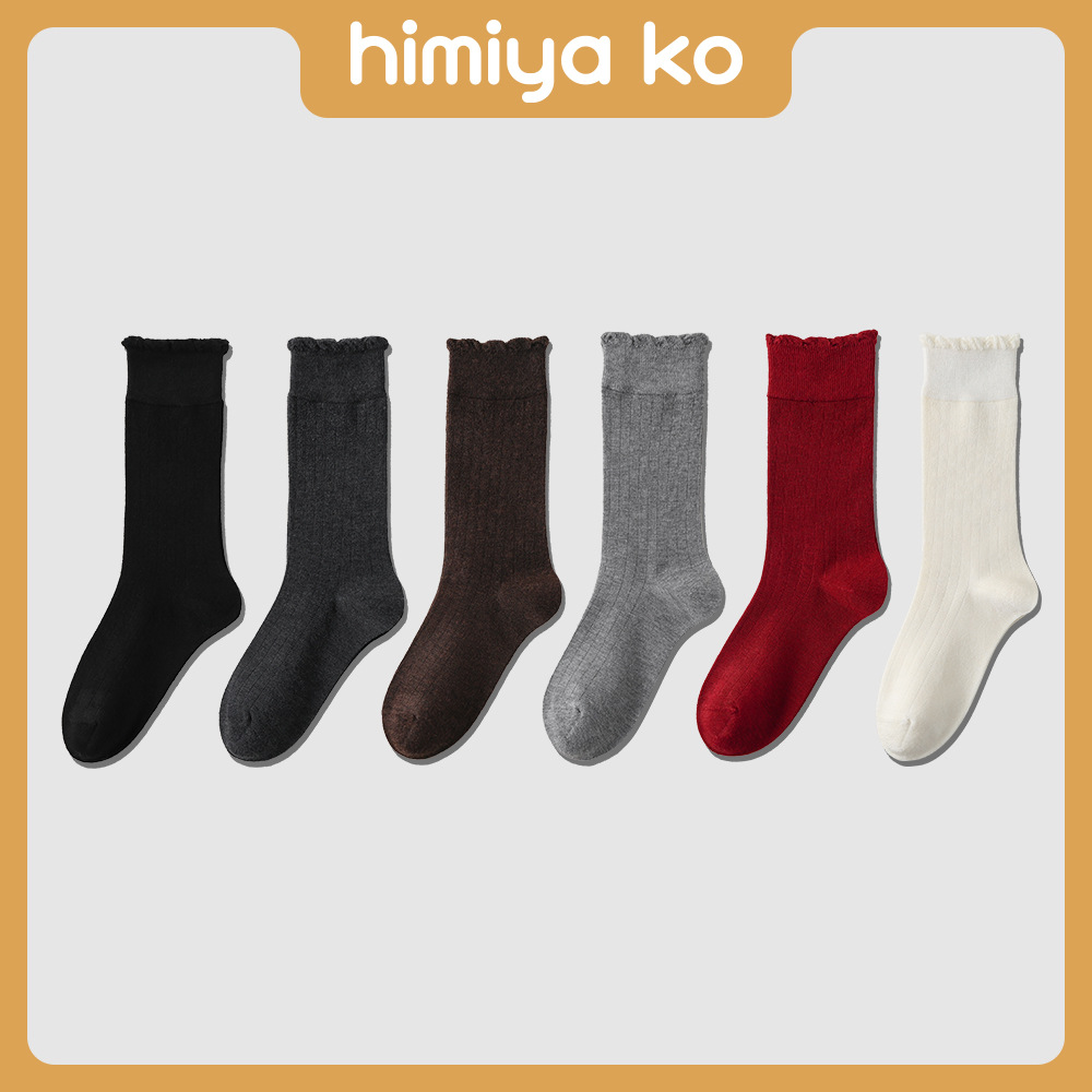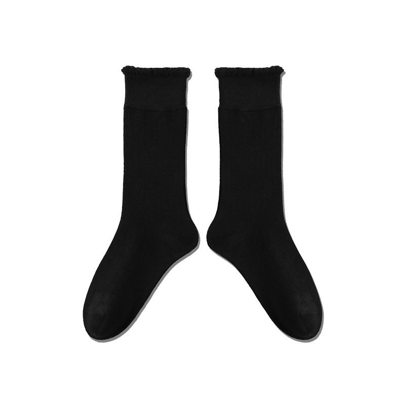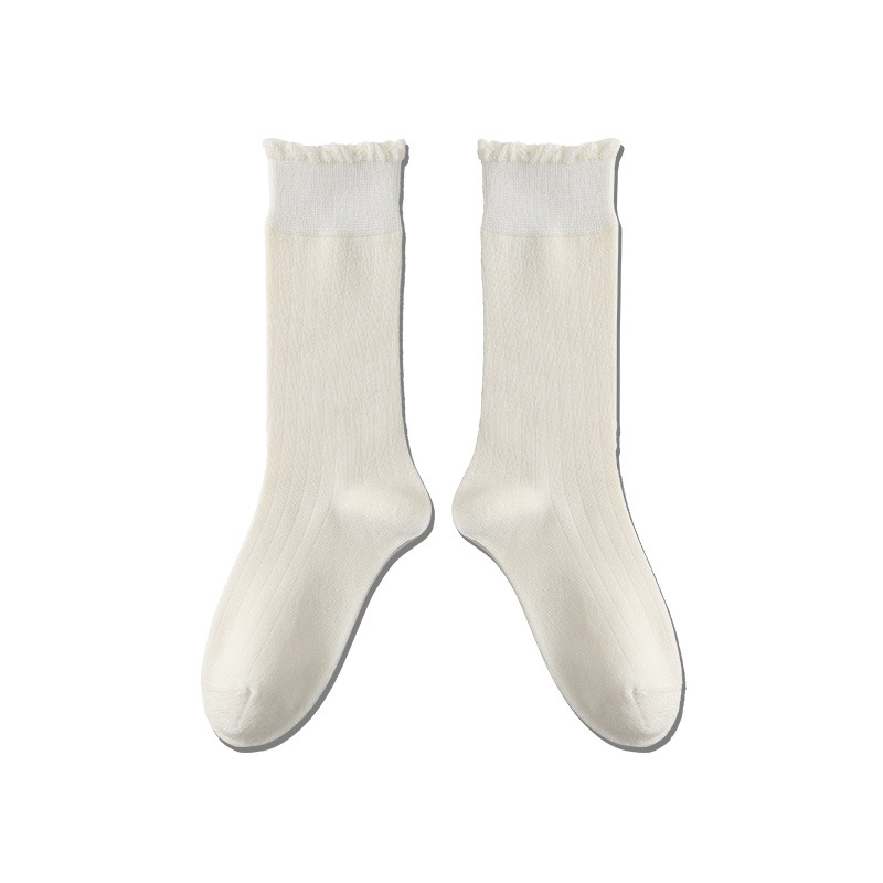 Lace Top Stacking Socks: Women’s Autumn Casual Mid-Tube Solid Color