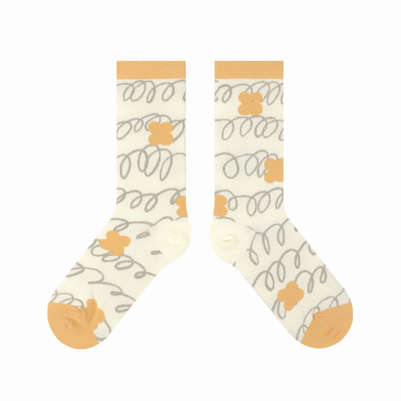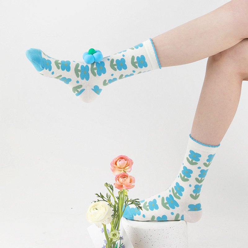 The **Himiya Ko Flower Socks** are engineered with a snug yet breathable fit, thanks to their seamless construction and elasticized cuffs that stay in place without slipping. The combed cotton fabric is highly absorbent, keeping feet dry and comfortable, while its durability ensures these socks withstand the rigors of daily wear and frequent washing.