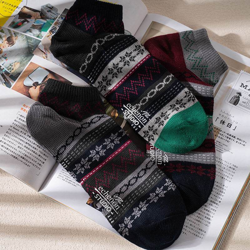 Men’s Japanese Harajuku Socks: Retro Ethnic Cotton Boat Socks for Spring/Summer