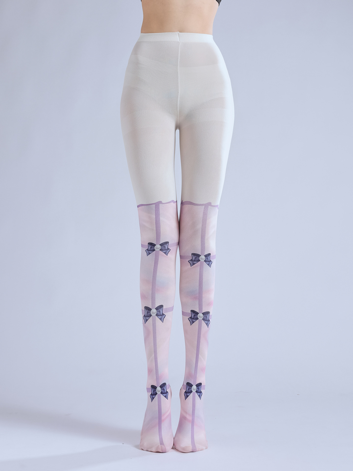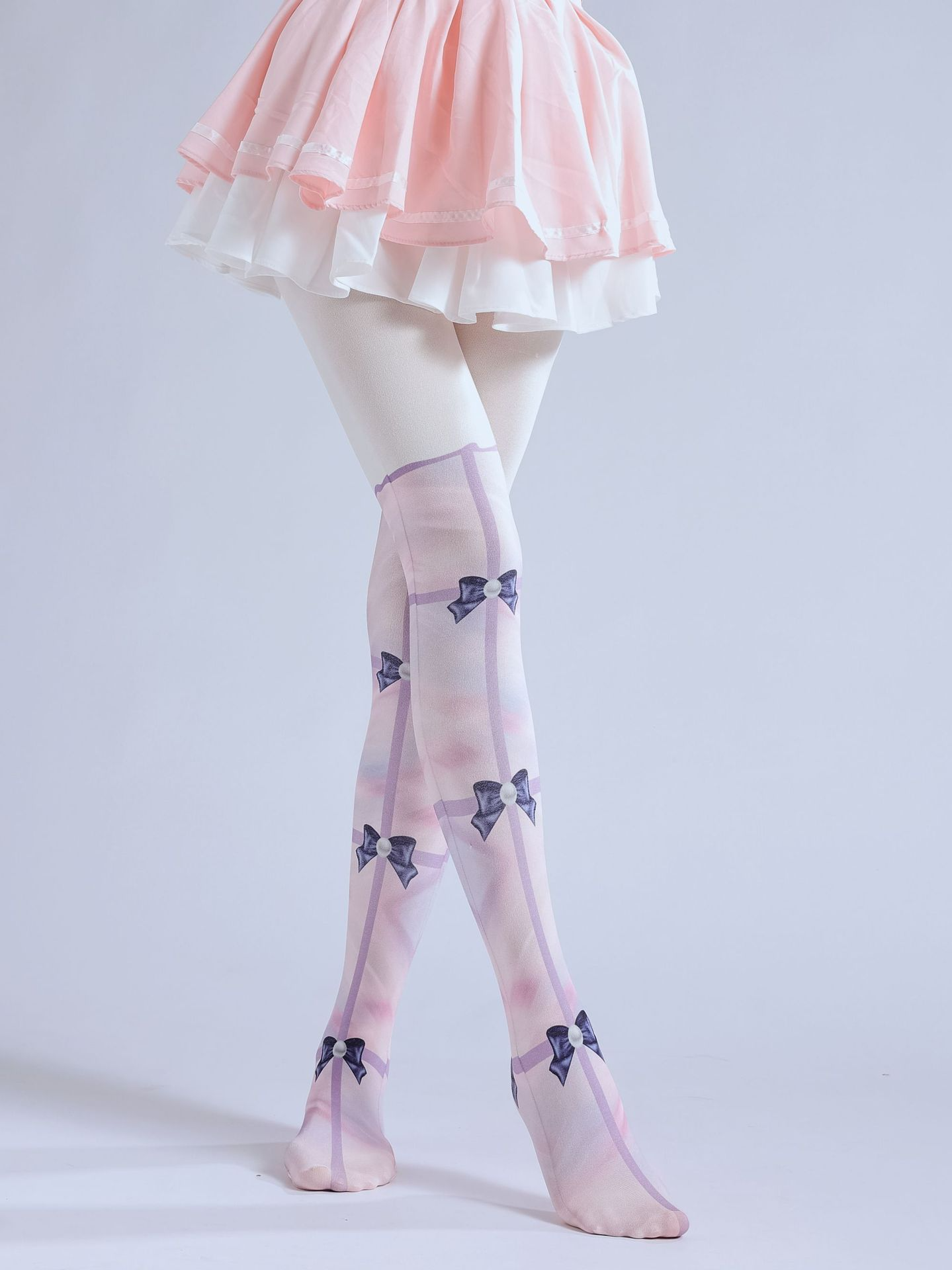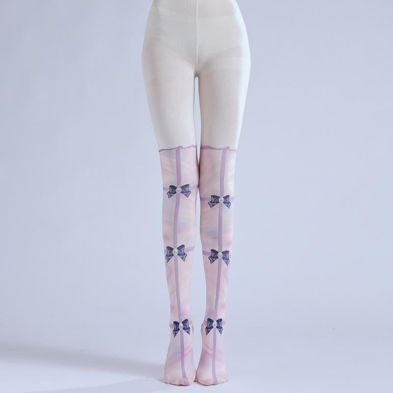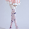 Lolita Pantyhose: Cute Pink Bow Print Fake High Socks Cosplay