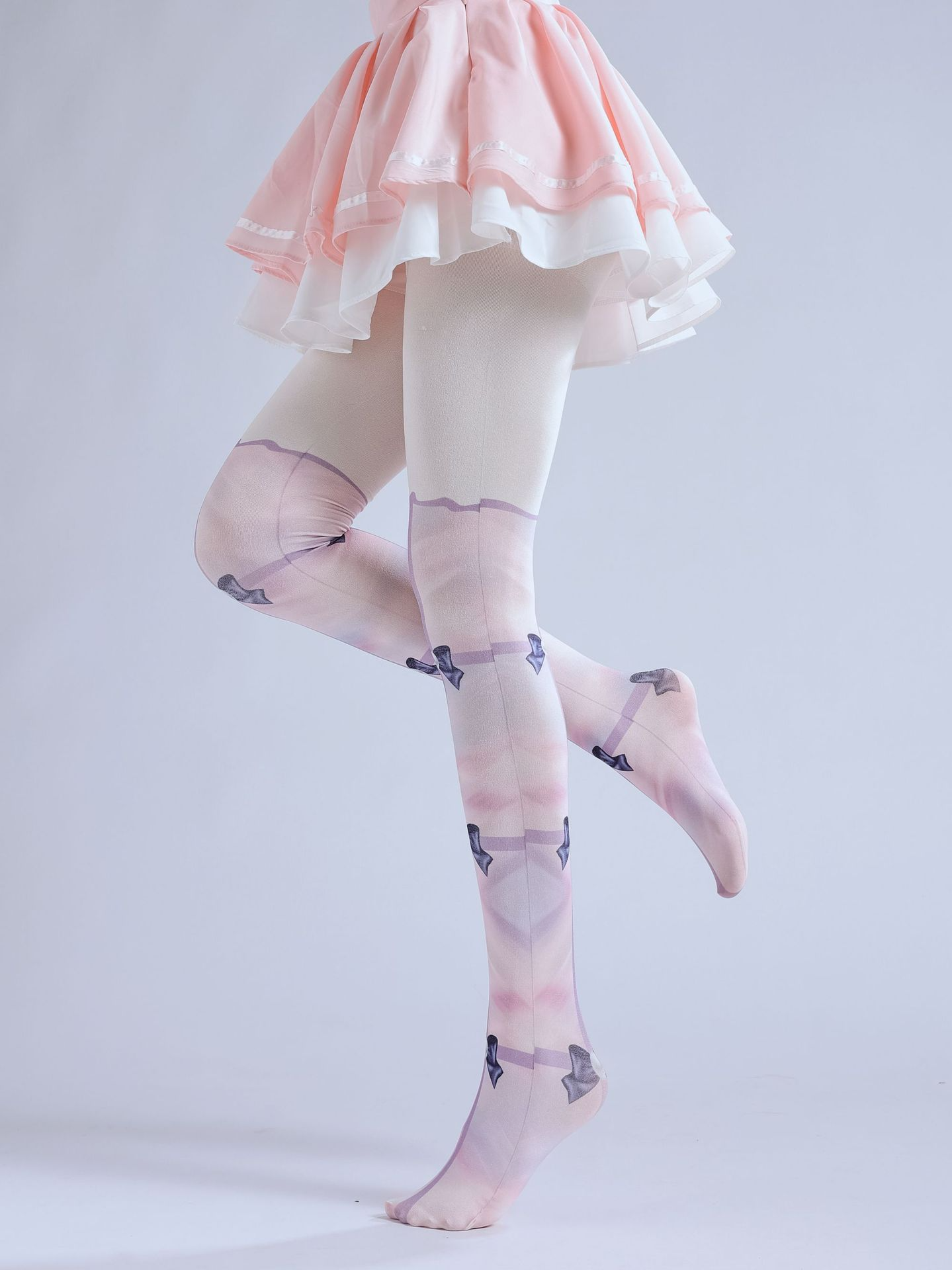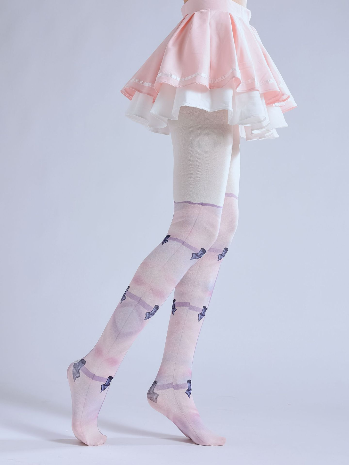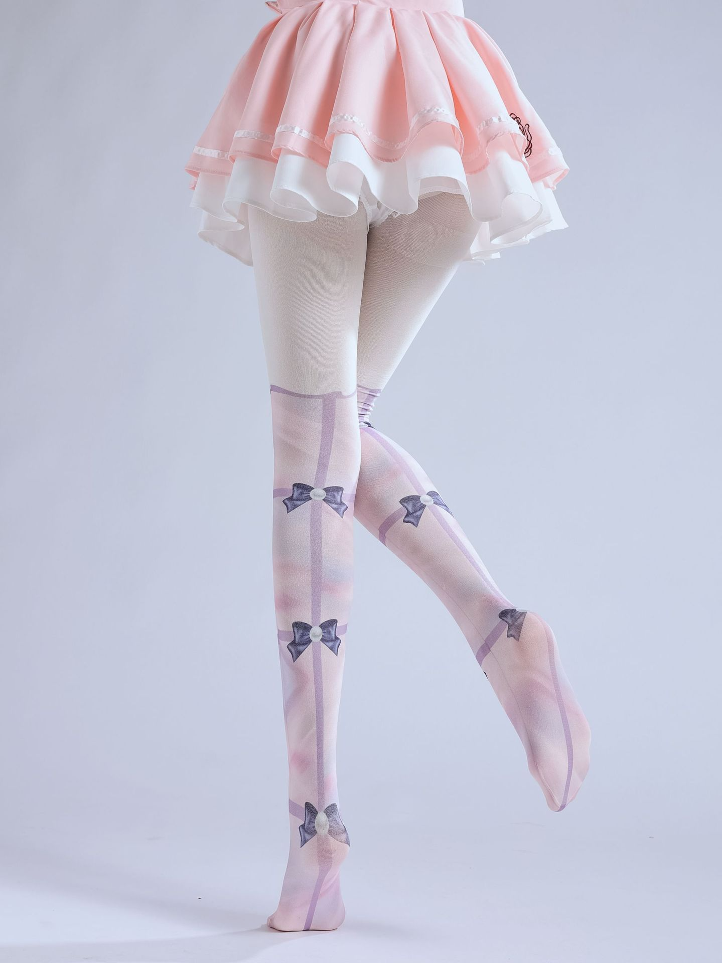 Elevate your cosplay or Lolita-inspired ensemble with the enchanting Lolita Fake Two-Piece Print Pantyhose. Designed to capture the essence of adorable femininity, these pantyhose feature a charming pink hue adorned with a delicate bow print and a faux high-sock base, creating the illusion of two separate pieces. The intricate design blends seamlessly with Lolita fashion, offering a whimsical and elegant touch to any outfit. Made from soft, stretchable material, they ensure a comfortable fit while enhancing durability. Perfect for cosplay events, themed parties, or everyday wear, these pantyhose add a playful yet sophisticated flair to your wardrobe. Their unique design not only saves you the hassle of layering but also provides a polished, cohesive look. Step into a world of cuteness and charm with these must-have pantyhose that combine style, comfort, and versatility in one enchanting package.