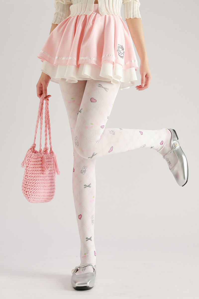 Adorable and playful pantyhose featuring a charming love heart bow tie design and whimsical rabbit print. These tights add a touch of sweetness and personality to any outfit, offering a unique and eye-catching style statement. Perfect for expressing individuality and adding a fun, youthful vibe to your look.