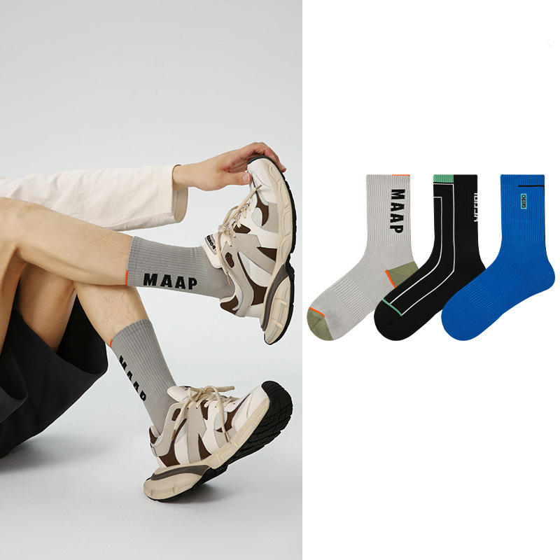 Men’s simple and fashionable letter print sports socks (3 pairs)