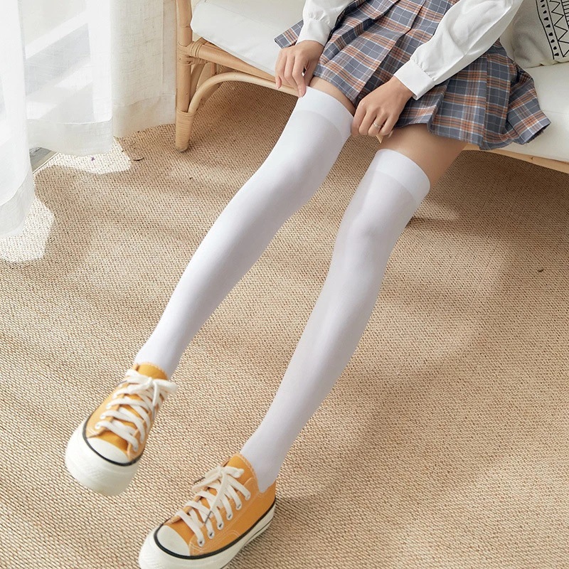 These multi-pair stockings offer a cute, anime-inspired Lolita look for spring and autumn. Featuring thin, printed designs, they provide a stylish over-the-knee fit in a soft white velvet, perfect for adding a unique and playful touch to any outfit.