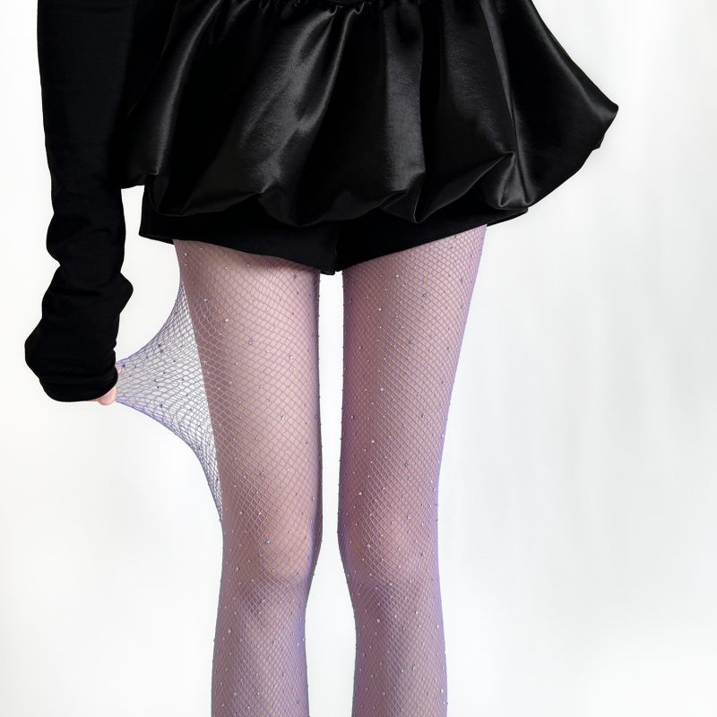 Step into the spotlight with the **New Internet Celebrity Rhinestone Fishnet Stockings** in dreamy purple, designed to transform your look into a dazzling masterpiece. These stockings are not just an accessory—they’re a statement. Crafted with precision, they feature a luxurious fishnet design adorned with shimmering rhinestones that catch the light with every move, creating a mesmerizing sparkle that turns heads.