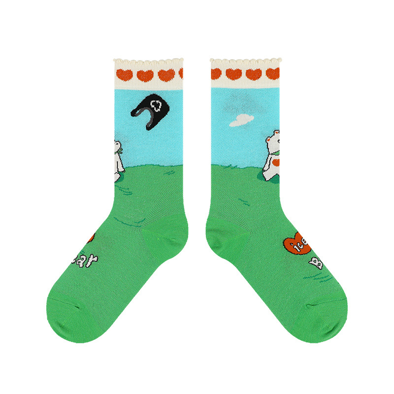 – **Charming Design:** Adorned with adorable Love Bear motifs, these socks add a playful and youthful touch to any outfit.