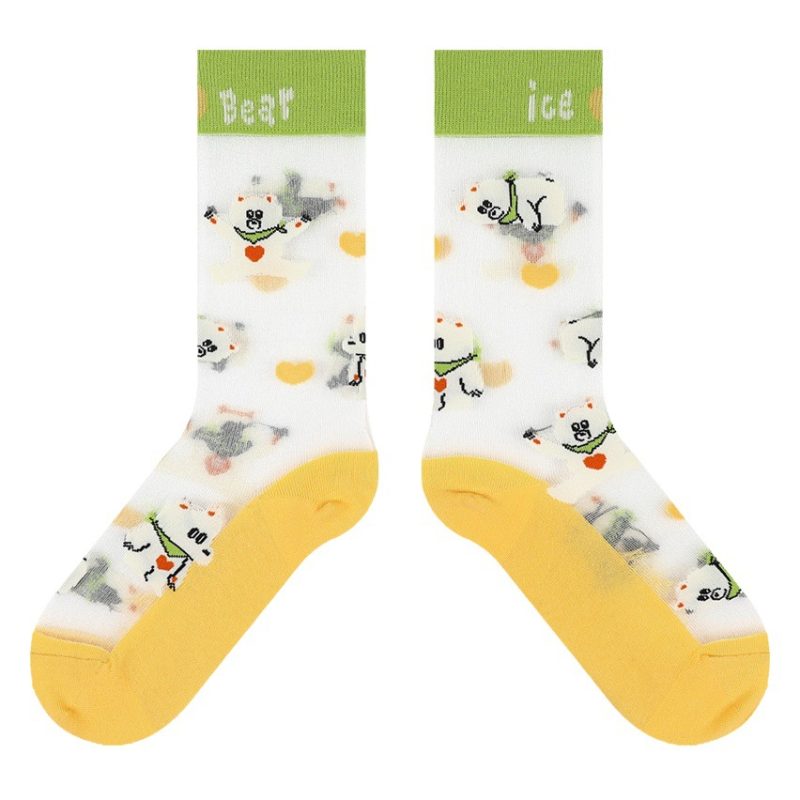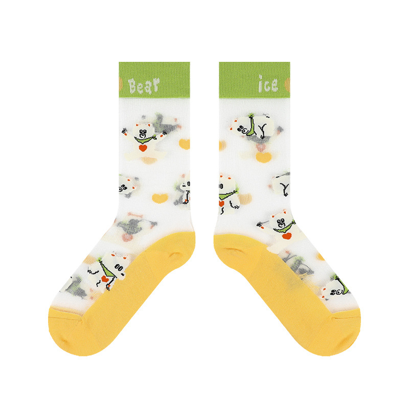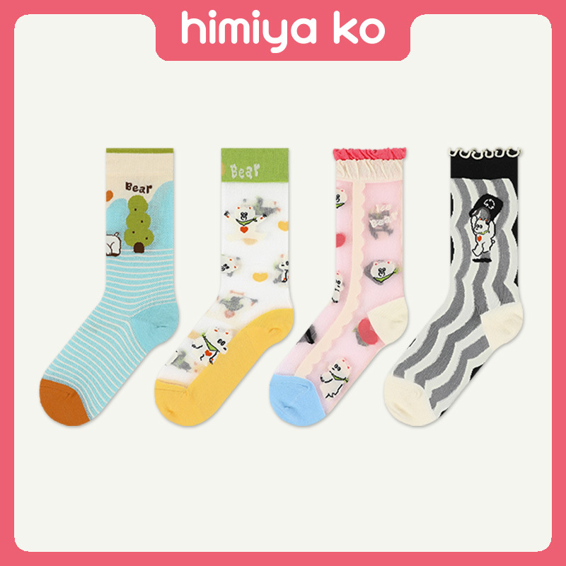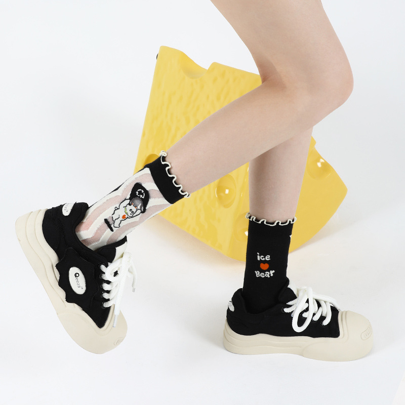 Original Love Bear socks for Women summer thin cute lace girls contrast color mid-calf socks Net red tide socks for women