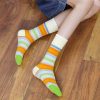 Original personalized light wave series mid-calf length socks color striped retro contrast color trendy socks for women