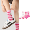 The vibrant pink stripes and cute rabbit motif make these socks a versatile accessory, pairing effortlessly with sneakers, flats, or even sandals for a fun, laid-back look. Whether you’re running errands, lounging at home, or meeting friends, these socks add a pop of personality to your ensemble.