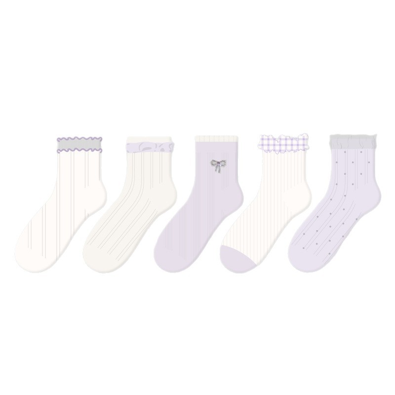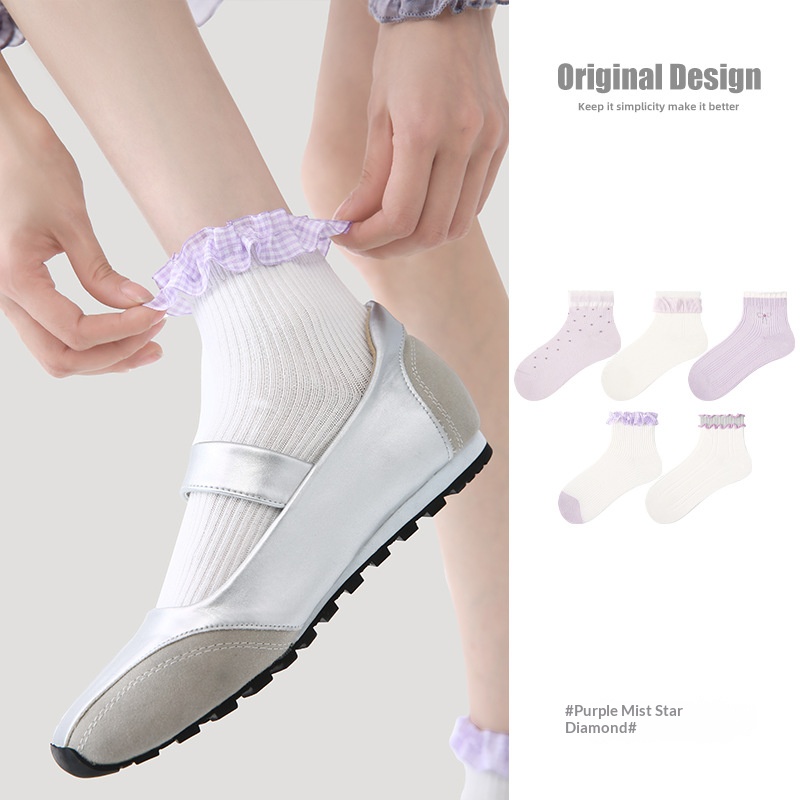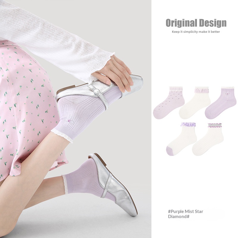 R5020 Socks Spring/Summer Women’s Purple Mist Star Diamond Casual Socks Women’s Thin Ship Socks Cotton Breathable Mesh Socks Children