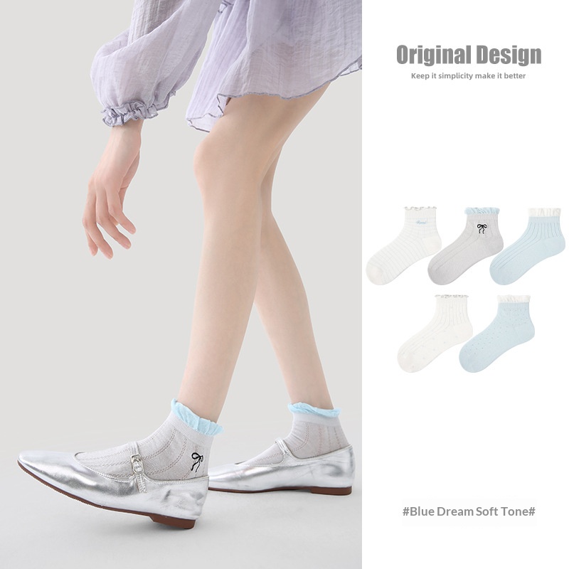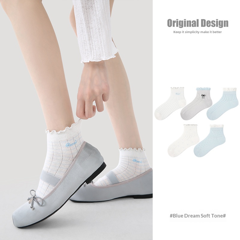 R5026 Socks Spring/Summer Women’s Blues Soft Dream Casual Socks Women’s Thin Ship Socks Cotton Breathable Mesh Socks Children
