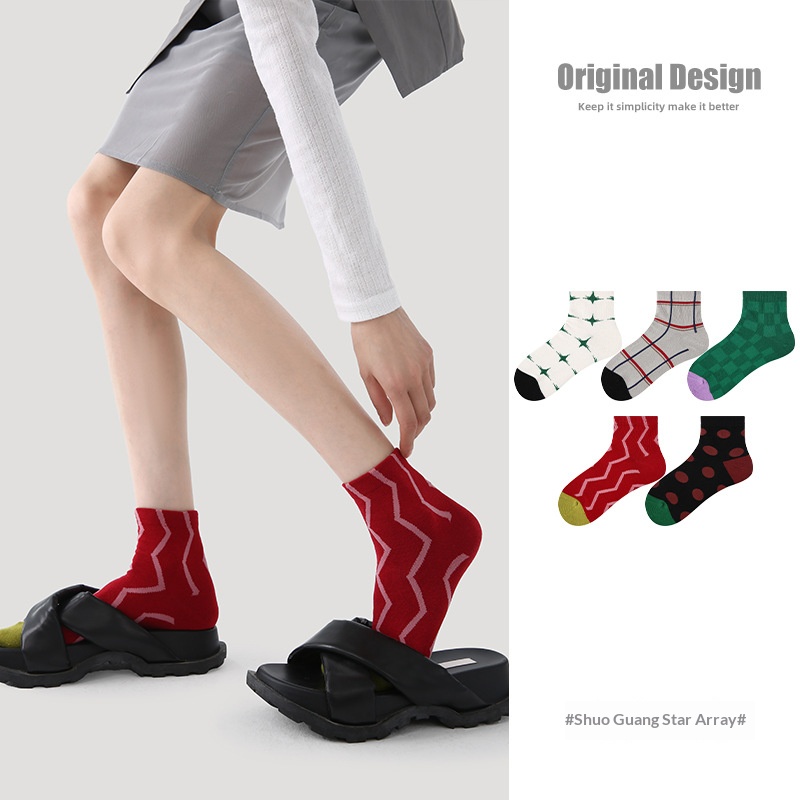 R5030 Socks Spring/Summer Women’s Sparkling Star Array Casual Socks Women’s Thin Ship Socks Cotton Breathable Mesh Socks Children