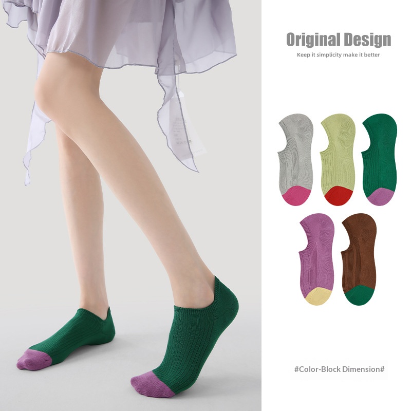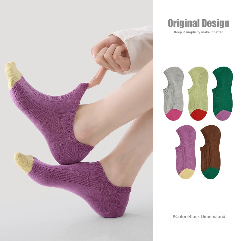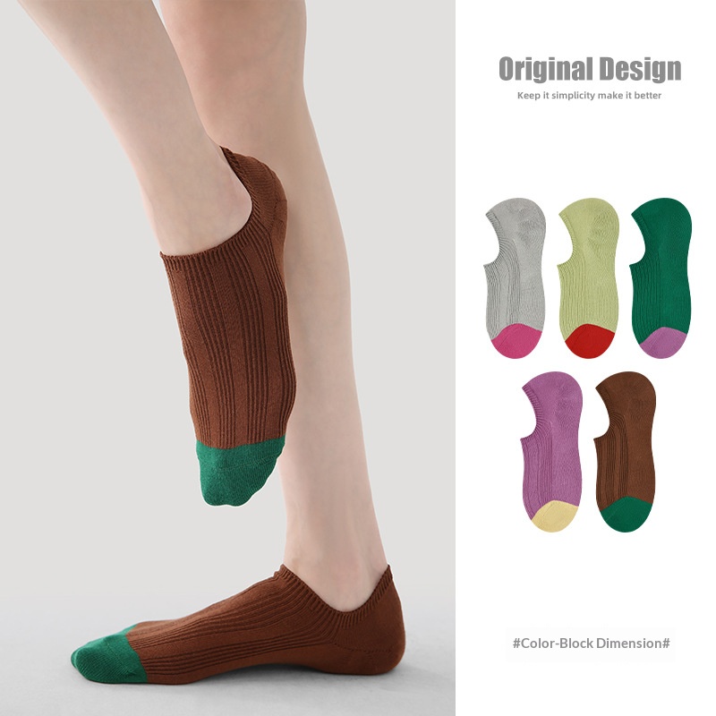 R5037 Socks Spring/Summer Women’s Color Contrast Dimension Socks Women’s Thin Casual Invisible Socks Breathable Mesh Socks Children