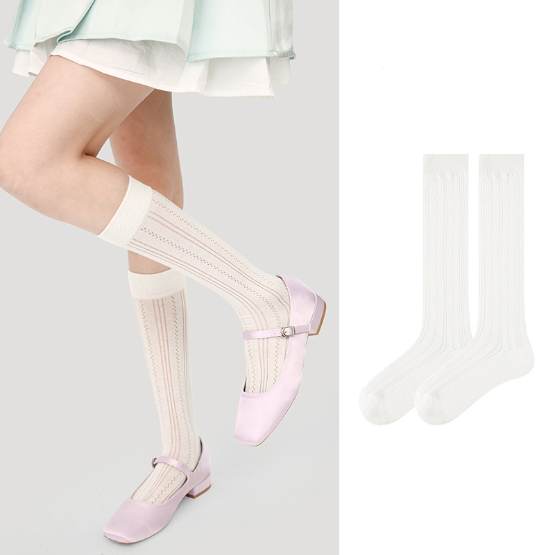 These socks are more than just a fashion statement; they are a versatile accessory for every occasion. The lightweight, thin fabric provides a barely-there feel, making them perfect for pairing with sandals, sneakers, or even heels. The middle tube length offers ample coverage, extending just above the ankle to protect your calves from the sun’s harmful rays while maintaining a chic, effortless look.