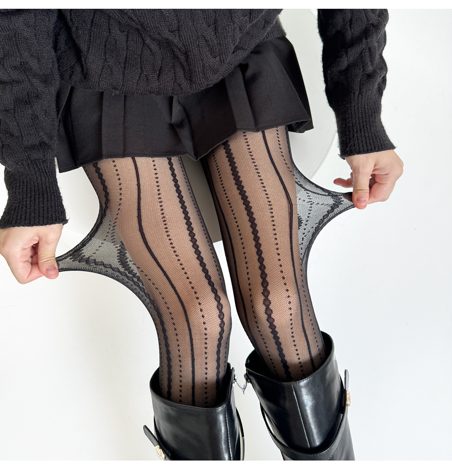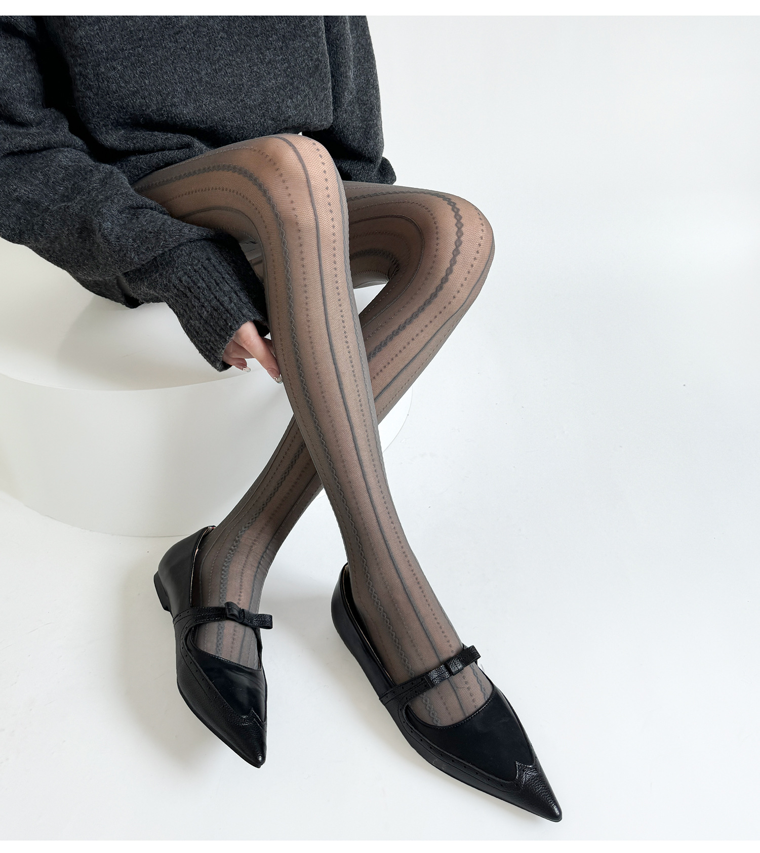 Step into timeless elegance with our **Sesame Gray Polka Dot Pantyhose**, a perfect blend of retro charm and modern sophistication. Crafted with intricate polka dot jacquard detailing, these stockings are designed to elevate your style effortlessly. The soft, breathable fabric ensures all-day comfort, making them ideal for both spring and autumn wear.