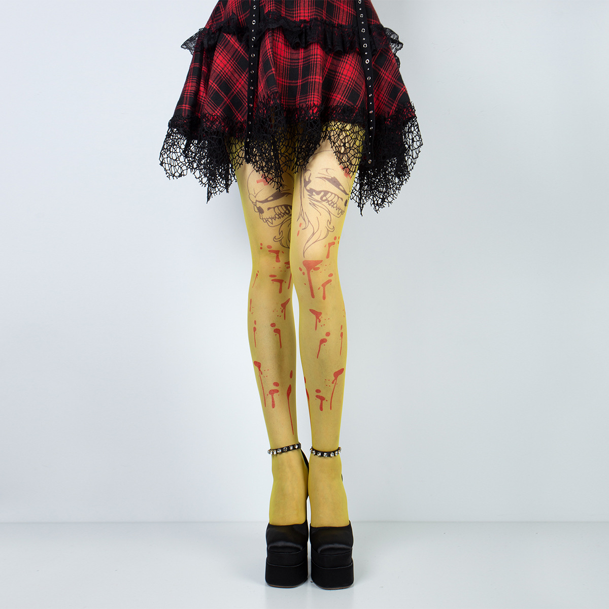 The attention to detail in the spider web and skeleton artwork creates a striking visual impact, making them perfect for costumes ranging from gothic vampires to sinister witches. The subtle yet bold blood splatter effect adds a gruesome touch, enhancing the overall spookiness of your attire. Whether you’re attending a Halloween bash, a themed event, or simply aiming to scare your neighbors, these pantyhose will make you the center of attention.