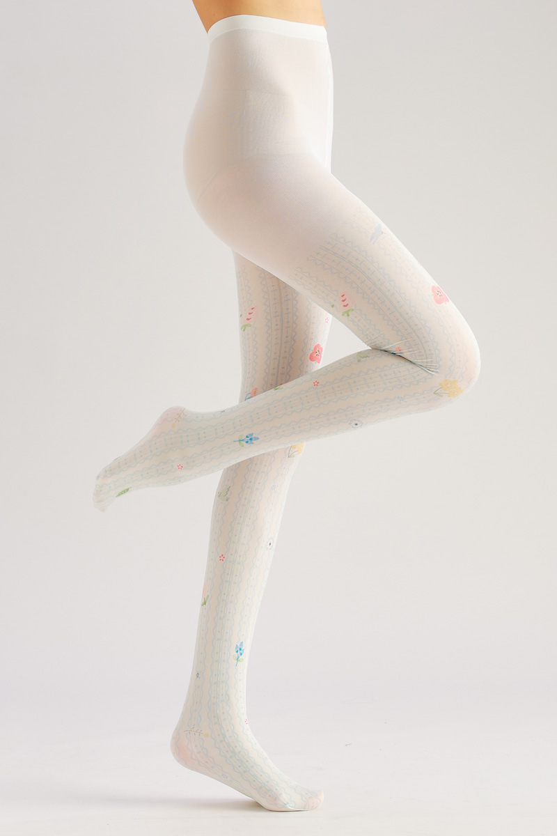 Bold striped pantyhose meet delicate floral print for a uniquely stylish statement. Elevate any outfit with these eye-catching tights, offering both visual interest and comfortable all-day wear. Stand out from the crowd with this unexpected and fashionable fusion.