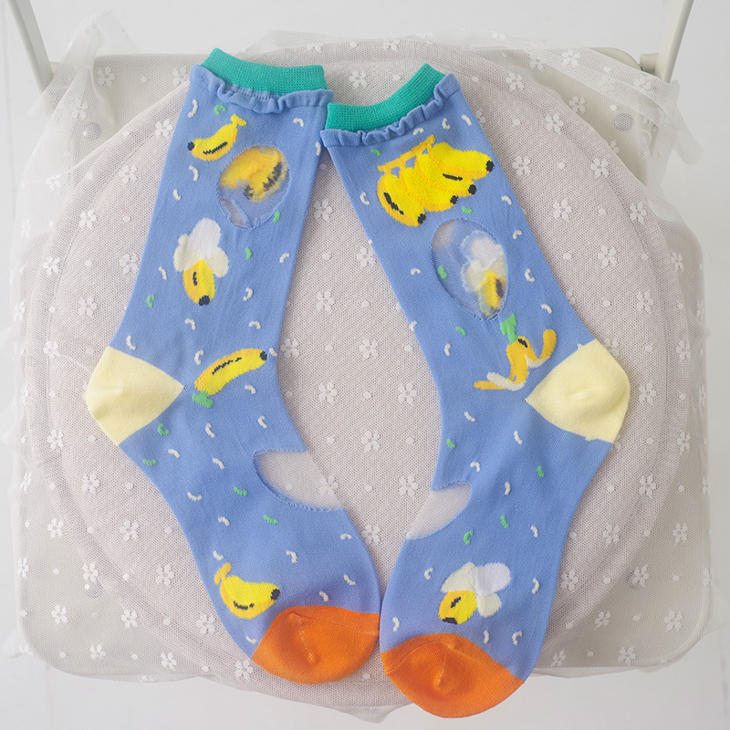 Step into summer with the **Summer New Fruit Acura Glass Silk Stockings**, a perfect blend of elegance, comfort, and style. These thin, breathable stockings are inspired by Japanese craftsmanship, offering a delicate and fresh aesthetic that complements any outfit. Designed for women who value both fashion and functionality, these socks feature a lightweight, glass silk fabric that feels soft against the skin while ensuring maximum breathability, even on the hottest days.