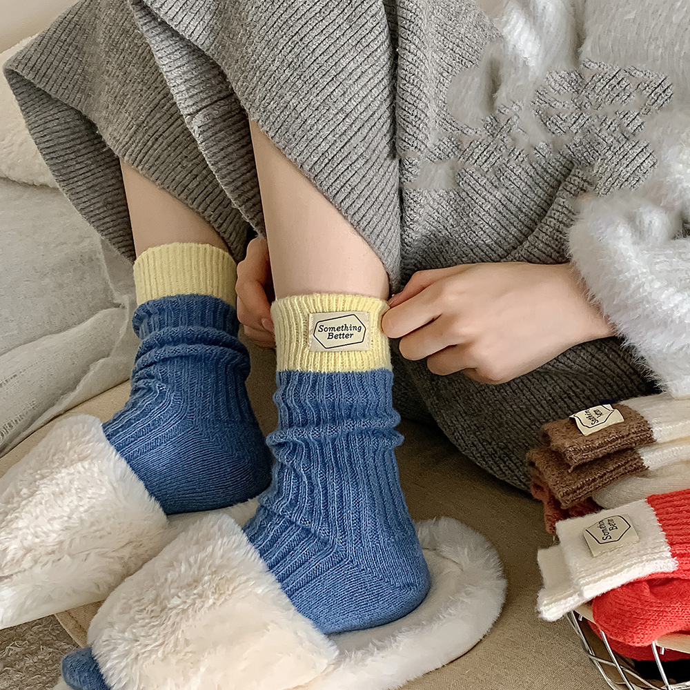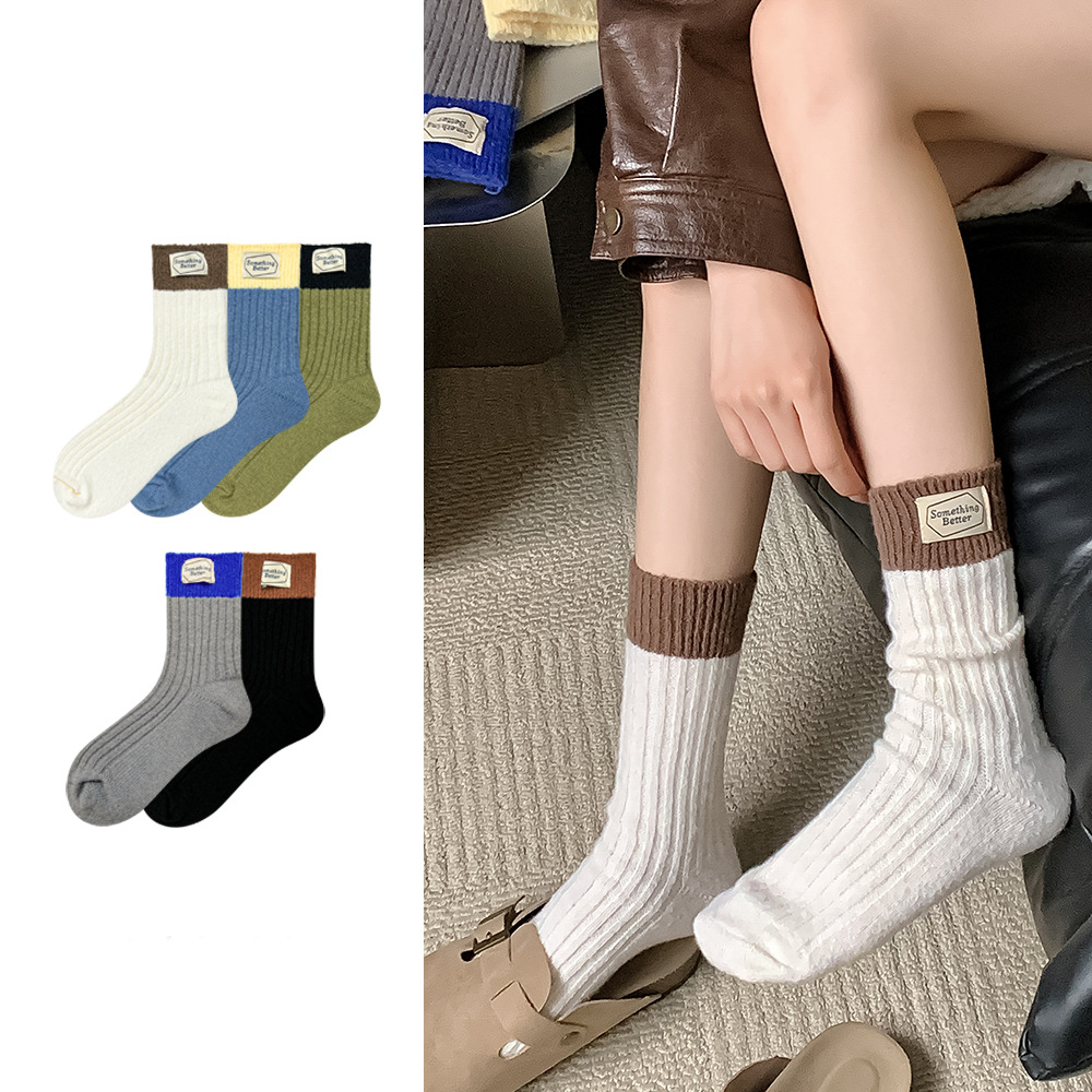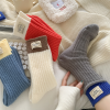 White and blue contrast color Korean ins versatile cloth label autumn and winter new women’s mid-tube socks