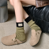 The **Korean-inspired design** features a subtle yet stylish cloth label, adding a touch of sophistication and authenticity. The mid-tube length provides versatile styling options, pairing effortlessly with sneakers, boots, or loafers. Whether you’re heading to work, meeting friends, or enjoying a cozy day at home, these socks seamlessly complement your ensemble.
