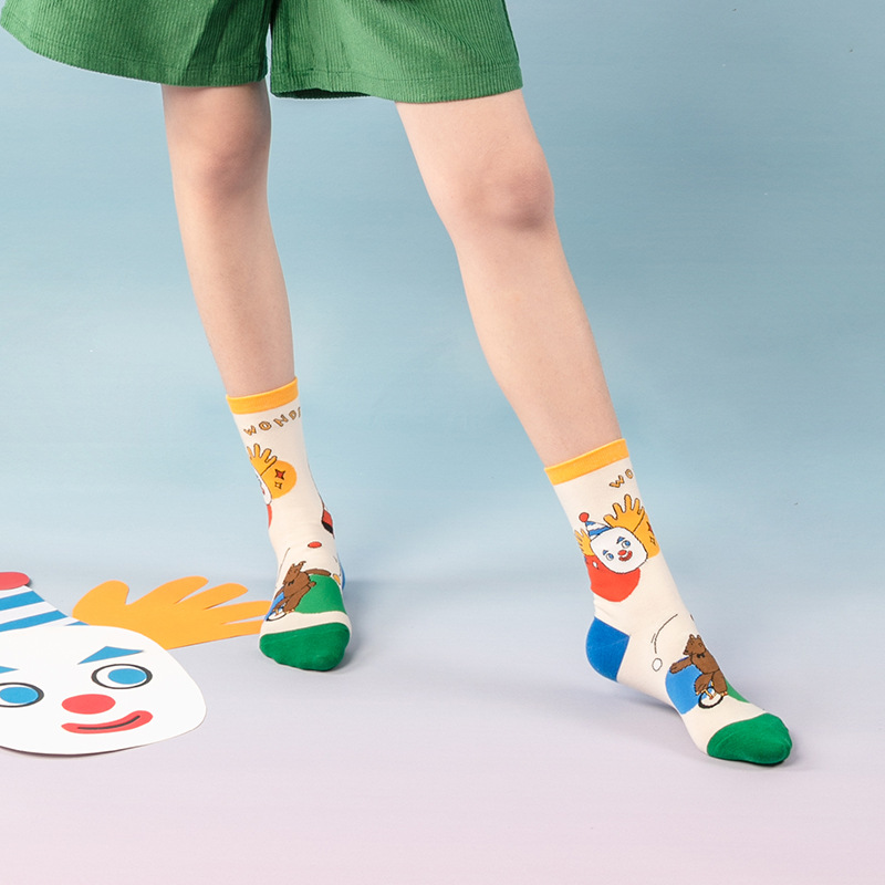 Women’s Socks Spring and Summer New Cute Smiley Circus Four Seasons Men’s and Women’s Socks ins Distinctive Fashionable Socks Cotton Mid-tube Socks