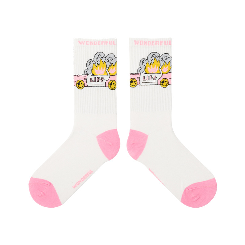 The **mid-tube length** provides optimal coverage and comfort, making them ideal for pairing with sneakers, loafers, or sandals. The **high-quality cotton fabric** ensures durability, moisture-wicking, and a snug fit, while the **elasticized cuff** keeps them securely in place. Whether you’re heading to the gym, lounging at home, or stepping out for a casual day, these socks combine functionality with a bold, eye-catching aesthetic.
